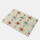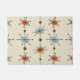 A vintage styled mid century modern abstrury art pattern with retro sputnik starbursts in burnt orange and sky blue.