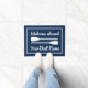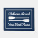Bienvenue à bord d'un bateau bleu blanc nom personnalisé pagaie Doormat. Tapis bleu et blanc de la marine / tapis d'entrée pour la maison, le bateau, le navire, l'école, le quai etc. Une idée cadeau élégante pour marin, amateur de voile, capitaine de bateau, capitaine, capitaine, capitaine, pêcheur, père, mari, amis, famille etc. Symbole de silhouette marine tendance avec une citation amusante. Aussi agréable que la décoration de la maison de plage.