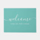 Tapis de porte avec le mot "Bienvenue" dans le script de calligraphie moderne et que vous pouvez personnaliser avec votre nom de propriété ou l'adresse de rue tout contre une couleur arrière - plan modifiable (cliquez sur personnaliser pour changer) qui est parfait pour votre propre maison ou votre propriété de location, hôtel, bed and breakfast, etc.