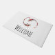 Un tapis de porte avec une paire de poissons koi noirs et rouges nageant et tournant autour de l'autre. Design minimaliste simple.