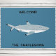 Un dessin amusant et pas particulièrement sinistre de requin à tête noire sur un arrière - plan vert turquoise. Humour doux pour quiconque aime l'océan. Modifiez le texte et le nom pour personnaliser. Art original de Nic Squirrell. Idéal pour votre bateau ou maison de plage, ou pour la vie côtière.