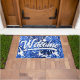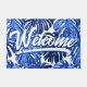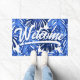 Paillasson Boho Blue White Tropical Leaves Script Bienvenue