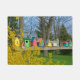 Ce tapis de portes présente une rangée d'oiseaux colorés qui dorment au soleil de printemps. Un buisson forsythia jaune, des arbres, le ciel bleu et l'herbe verte encadrent la rangée de maisons d'oiseaux uniques. Montrez votre amour pour les amis à plumes et leurs oiseaux.