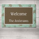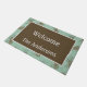 Ajoutez une touche personnalisée à votre entrée de cabine rustique avec ce tapis de porte imprimé d'un motif en pin dans les tons bleu turquoise et marron. Votre choix de tailles. Trouvez d'autres éléments de coordination dans cette collection de design à Camp_and_Cottage sur Zazzle.