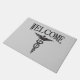Ce n'est pas blanc afin de cacher une partie de la saleté qu'un Mat de Bienvenue va ramasser. Insigne ou symbole Médicale le Caduceus, la baguette magique du dieu grec Hermes (Mercure), le dieu du commerce, de l'éloquence, de l'invention, du voyage et du vol, et ainsi était un symbole d'hérauts et du commerce, pas de la médecine. Malgré cela, ce symbole a été adopté par beaucoup dans le domaine de la médecine. Une tige courte entrelacée par deux serpents et surmontée d'une paire d'ailes