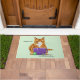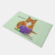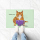 Un mignon chat tabby orange assis devant une tasse de café violet dans un arrière - plan de vert