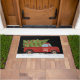Camion rouge rétro avec texte de Bonnes Fêtes et un arbre de Noël vert. La couleur noire de l'arrière - plan peut être changée. Le texte est modifiable.