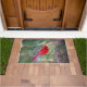 Un cardinal rouge et enjoué perché dans les bois envoie un accueil de bienvenue, sur un tapis de porte robuste.