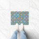 Le carrelage marocain donne une touche exotique à ce tapis de porte aux tons turquoises, bleus et terre cuite