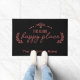 Cette natte un-de-un-aimable a les mots "que c'est notre endroit heureux" en beau texte, au-dessus du nom de famille de votre famille. L'arrière - plan est noir, alors que le texte est sorte de rosâtre.
