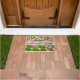 Champ de fleurs de tulipe rose et tapis de porte vert herbe positive. Cadre décoratif et texte Bienvenue. Personnalisable, vous pouvez modifier les images et vous pouvez modifier ou supprimer le texte modèle.