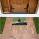 Les mots sur cette natte indiquent, "payez le péage avant le croisement." Cette natte montre un chat noir se reposant à côté d'une lanterne sur un pont en bois rustique entouré par les plantes vertes et les fleurs. Blackie, le chat, lui fait sa routine chaque matin pour sortir à ce pont et pour passer quelques moments avant de commencer son jour. Une natte comique et belle pour chaque amoureux des chats noir.
