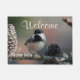 Les cônes de Chickadee et de pin avec l'arrière - plan hued de rose de doux avec le texte qui lit le "accueil" mais se sent libre pour changer ou enlever si vous aimez.