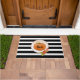 Le Citrouille Doormat "Boo" d'Halloween. C'est un joli design Halloween à rayures modernes noir-blanc.
