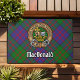 Clan MacDonald badge crête entouré d'une sangle et boucle sur l'arrière - plan tartan. Texte personnalisé.