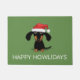 Mignonne caricature Wiener Chien de Noël Mat de bienvenue. Chiot noir et bronzé Dachshund portant un chapeau de Père Noël. Le texte "Happy Howlidays" peut être personnalisé avec votre propre message. Un drôle de Doxie doormat pour la saison des fêtes. Fait un cadeau parfait pour les amoureux de les chiens weenie.
