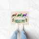 Trois silhouettes colorées italiennes Greyhound avec empreintes de pattes et texte "Welcome" contre un arrière - plan moderne bronzé.