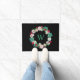 Tapis de porte invitant fait en noir, avec des graphiques d'une couronne florale peinte. Un monogramme vert d'une lettre, au milieu de la couronne, est prêt à se personnaliser pour vous-même ou comme une grande idée de cadeau pour le réchauffement de la maison.
