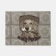 Cette natte comporte un cowboy de golden retriever tenant une arme à feu. Le message lit, "allo Pardner".