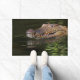Ce mat de porte cool a un crocodile représenté dessus.