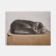 Un chat en tabby gris qui dort sur un tapis de porte en carton. Pour les amoureux de les chats. Trendy, cool, chic, moderne, unique, chic chic, endormi. Copyright photo Marg Seregelyi Photography.