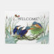 Le collage frais des beaux-arts botaniques vintages des oiseaux bleus d'Alcedo de martin-pêcheur, un oiseau rouge de colibri, et les Cattails, à un étang, est sur cette natte bienvenue d'oiseaux de colibri de martin-pêcheur. Les images sont public domain dû à copyright expiré. Le collage est par moi.