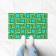 Tapis de porte dans une clé grecque Art Déco ou motif de labyrinthe en vert jade clair et foncé, accentué de turquoise / paon