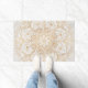 Un art mandala moderne, élégant et brillant à la main Flower dessiné à la main, sur une image abstraite de marbre blanc, avec des formes géométriques floral, feuille, jolies silhouettes du soleil, points de confettis d'or, tribaux, éléments géométriques aztèques, sur un arrière - plan de marbre blanc. Ce design Mandala chic ravira votre quotidien.