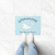 Un joli béluga blanc accueille les clients avec un jeu de mot "whalecome". Ajouter un nom de famille ou un autre message court sous la baleine.