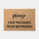 Un tapis de portes amusant pour tous les passionnés de shopping en ligne! Fonctionne le texte "S'il vous plaît masquer les paquets de Boyfriend." Un cadeau amusant pour votre petite amie ou pour votre propre maison.