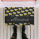 Décoré avec des bees jolies, souriantes, jaunes et noires. Un arrière - plan noir chic. Personnalisez et ajoutez un nom. Le nom est écrit avec un script de style moderne écrit à la main avec des swashes. Pour que les swashes ne suppriment que le nom de l'échantillon, laissez les espaces ou émoticônes devant et après le nom.