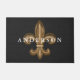 Regard d'or de fantaisie fleur de lis de fer travaillé au centre. L'arrière - plan a un motif cranté par blanc très petit au-dessus de votre choix de couleur d'arrière - plan et de texte personnalisé de nom de famille. Cette natte exsude l'amélioration et ferait une grande impression sur vos invités de maison pendant qu'ils sont bien accueillis à votre maison !