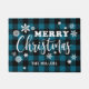 Design moderne personnalisé de porte Joyeux Noël qui comprend élégante écriture manuscrite lettrage, arrière - plan plaid noir et bleu, mignon flocons blancs. Un cadeau de Noël parfait pour les nouveaux propriétaires ou les jeunes mariés.