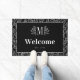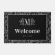 Paillasson Elégant Blanc Noir Vert Monogramme Bienvenue