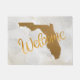 Welcome your guests in style with this classy doormat. The door mat features an elegant design with a faux marble background in various shades of gray along with a rich gold-colored Florida State map. The text reads "Welcome" in a sophisticated gold script font. The doormat is lovely for any Florida resident and makes a perfect gift for those with classic refined taste!