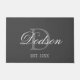 Elegant Gris Blanc Monogramme Date d'établissement Porte mat Conçu avec personnalisable gris foncé arrière - plan et gris clair monogramme initial sur le centre. Personnalisé avec le nom de famille du couple en écriture de calligraphie blanche classe et année établie en chiffres blancs sur le centre inférieur avant. Faites une grande idée de cadeau de douche à la maison ou à la nuptiale.