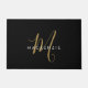Élégant Noir Noir Script Monogramme mat Doormat. Un élégant monogramme en or combiné à une police blanche de san-serif, donne un aspect contemporain.