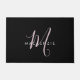 Paillasson Élégant Noir Noir Blush Pink Script Monogramme