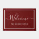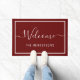 Bienvenue famille et amis à votre porte avec cet élégant tapis de portes bordeaux.