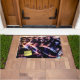 L'oeuvre de cette Door Mat est une photo originale de ZoeSPEAK d'un ensemble de tambours. Les tambours noirs brillants avec leurs jantes argentées reflètent les couleurs des lumières du studio, blues, rouges et verts. Des cymbales au-dessus des tambours attendent d'être frappées. Il y a un post jaune optionnel il autocollant avec le texte qui dit "Bienvenue". Ceci est configuré pour que vous personnalisiez ou supprimiez si vous le souhaitez.