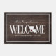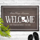 Un excellent moyen d'accueillir vos amis et votre famille avec ce tapis de bienvenue personnalisé. Votre état d'origine est présenté à la place de la lettre O dans le message de bienvenue, avec un coeur rouge qui pèse sur votre ville natale. Assurez-vous de cliquer sur "personnaliser" pour déplacer le coeur dans votre région de l'état. Faites un fantastique ménage ou un cadeau marié.