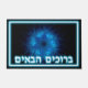 Une belle image fractale, élégante, bleue, à l'allure gravée d'une Étoile de David avec le texte hébreu "B'ruchim Haba'im" (ב ר ו כ י ם ה de - bienvenue) en bleu et blanc éclatant.