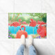 Design d'art original d'oiseaux flamands roses tropicaux des Caraïbes par l'artiste animalière Carolyn McFann de Two Purring Cats Studio imprimé sur un tapis de porte personnalisable, fade et moisi/mildew résistant.