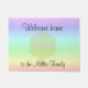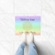 Un tapis de bienvenue élégant et chic. Fleur de vie dorée avec l'inscription rose amour et un fond pastel.