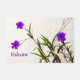 Des fleurs violettes vives se plient dans la brise dans la photo originale de ZoeSPEAK sur ce mat de portes. Les fleurs sont des pétunias mexicains, fleurissant sur de longues tiges avec de longs feuilles verts. Toutes les formes font une silhouette colorée contre l'arrière - plan en stuc pâle. Ajoutez un peu de gaieté violette naturelle à votre monde. Il y a un texte qui dit "Bienvenue". Cette option vous permet de personnaliser si vous le souhaitez, ou de supprimer si vous le souhaitez.