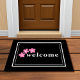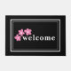 Bienvenue dans votre maison avec ce tapis de porte personnalisable qui présente un design noir et blanc classique agrémenté de fleurs simples que vous pouvez changer à n'importe quelle couleur, et texte personnalisé qui dit, "Bienvenue." Ce design amusant fera un grand ajout à un patio ou une véranda. Modifiez le texte et la couleur de la fleur pour qu'il corresponde à vos besoins de cadeaux ou de décoration à la maison.