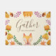 Matelas doux et mignon pour la saison de Thanksgiving. Le design est composé d'un renard au milieu avec des feuilles d'automne et des fleurs autour. Ils ont été peints d'aquarelle. Au milieu, il y a un texte dans la calligraphie qui dit "Rassemblez" avec votre nom de famille sous celui-ci.