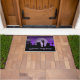 Ce tapis de porte Halloween est montré avec une empreinte éffrayante zombie à la main. Customisez cet objet ou achetez tel quel. Image stock freepik.com