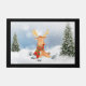 Un joli tapis de Noël avec un mignon orignal qui tombe sur ses patins à glace dans la neige.