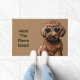 Ce tapis de portes personnalisé a été créé pour la maison des amateurs de Goldendoodle. Il a été conçu pour apporter un sourire aux invités du propriétaire quand ils approchent de la porte d'entrée et remarquent le message sur le tapis qui dit "Essuyez vos pattes Dood".